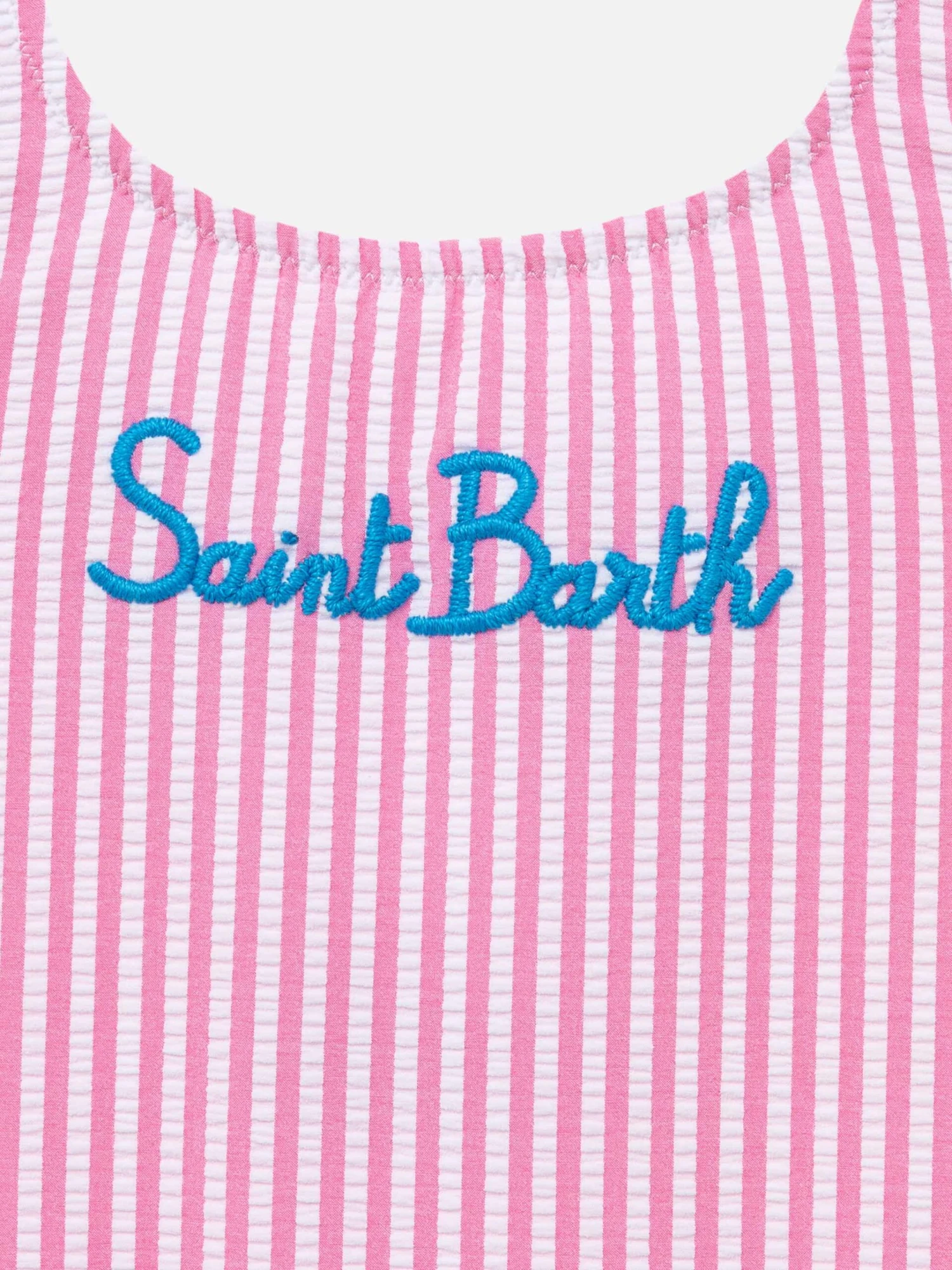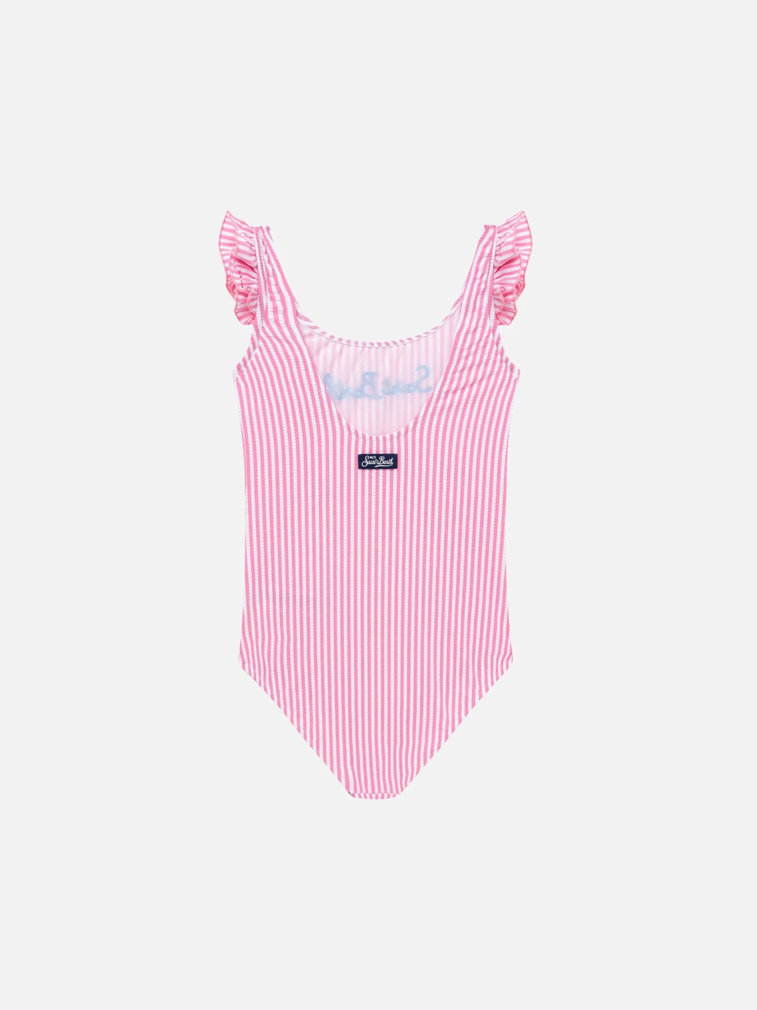 MC2 Saint Barth Tilda One-piece Seersucker Swimsuit With Ruffled Straps