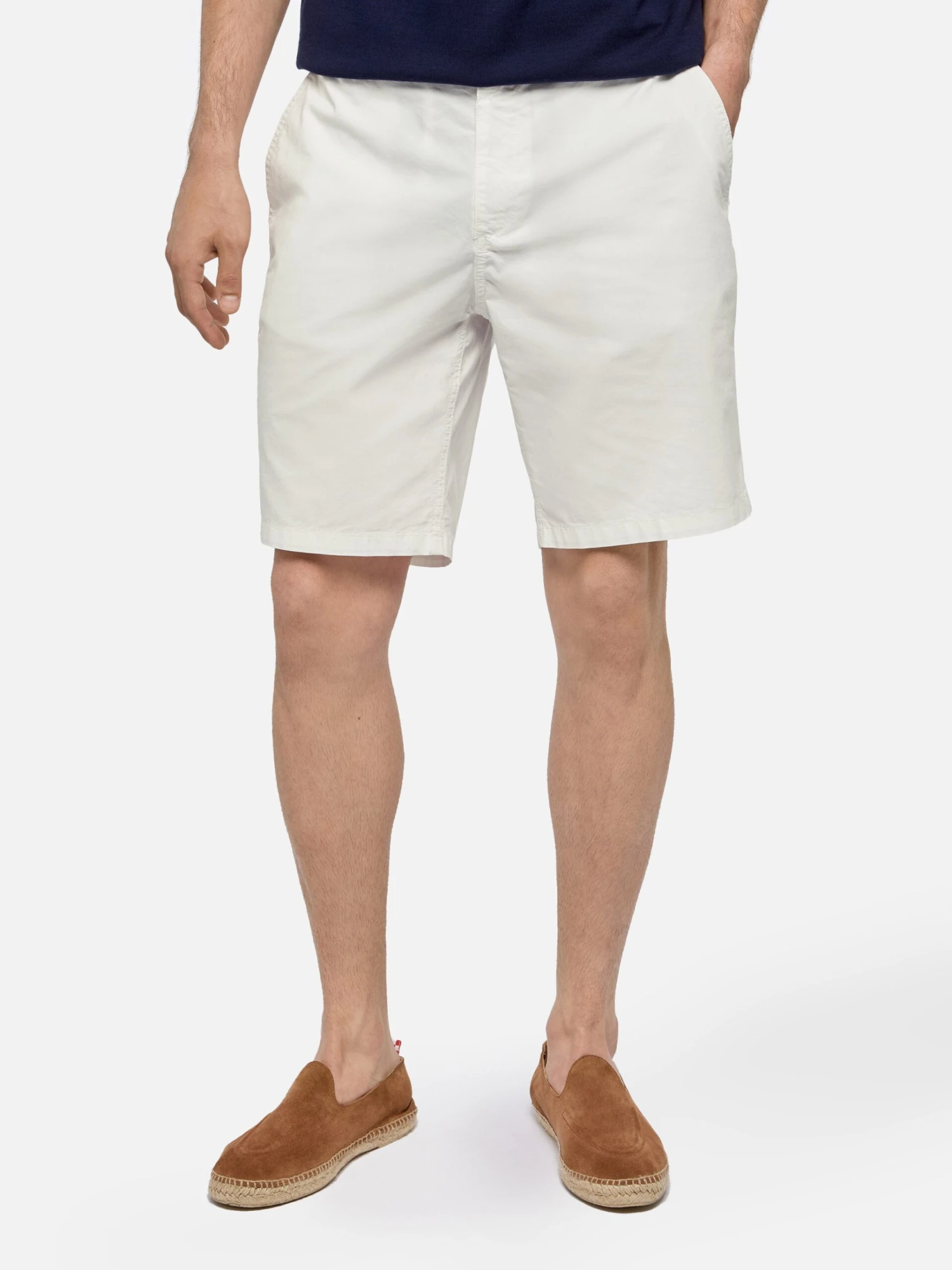 Introducing our 100% cotton bermuda shorts Ischia, designed for both comfort and style. These shorts feature an elasticated waistband on the back, with a summary and zip closure, side pockets and flap pockets at the back. Complete with a branded summary on the waistband for added detail.