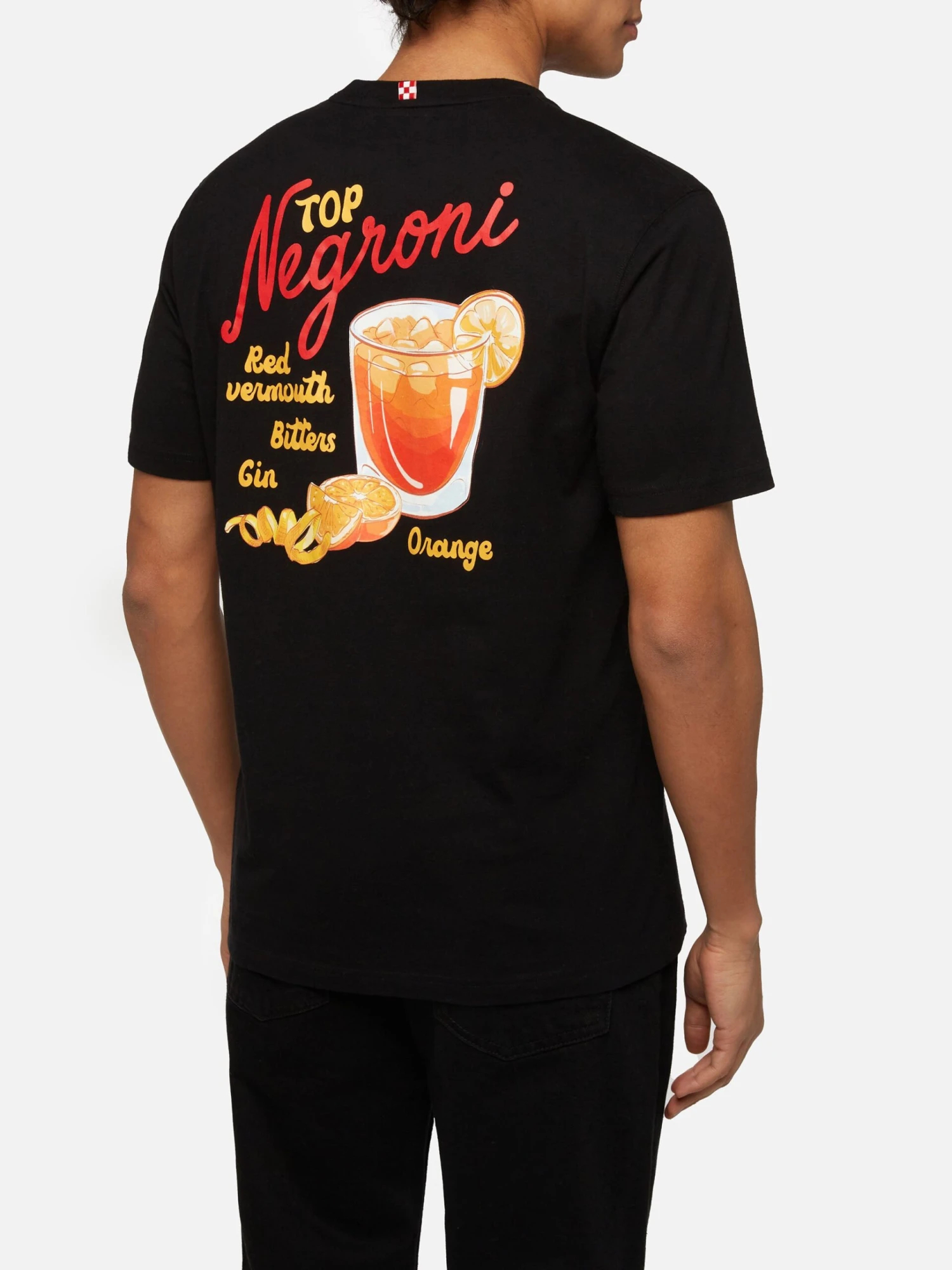 Negroni recipe small print on the front and big print on the back