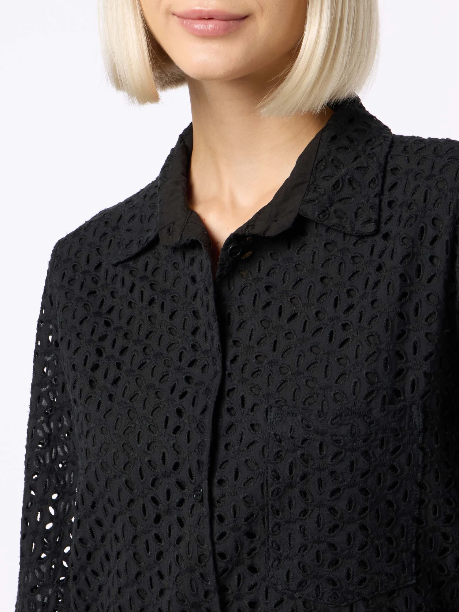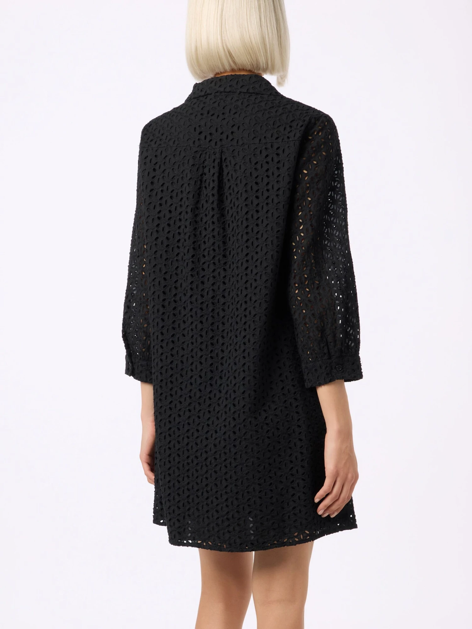 Introducing Helena Embry, a timeless addition to your wardrobe. Crafted from pure cotton, this shirt dress exudes elegance with its Sangallo embroidery adorning the fabric. The intricate embroidery graces the entire shirt, adding a touch of sophistication to the classic design. Featuring a front patch pocket and three-quarter sleeves, this woman’s long shirt is as practical as it is stylish. Elevate your ensemble with this versatile piece that transitions effortlessly from day to night.