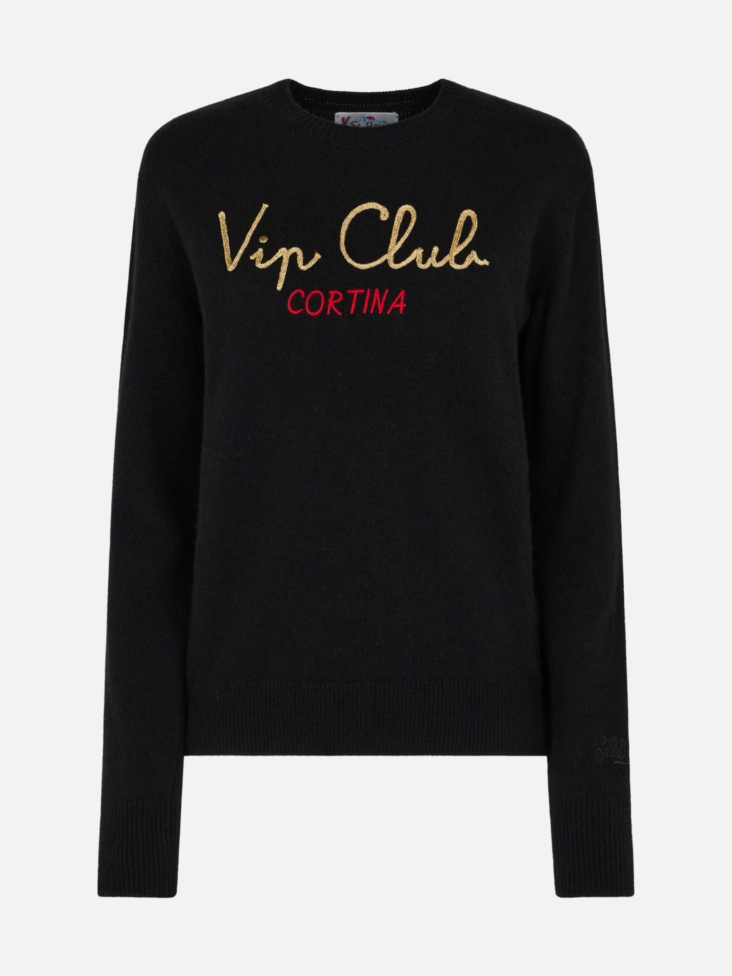 MC2 Saint Barth Woman Black Sweater New Queen With Embroidery Vip Club Cortina | VIP CLUB CORTINA SPECIAL EDITION
