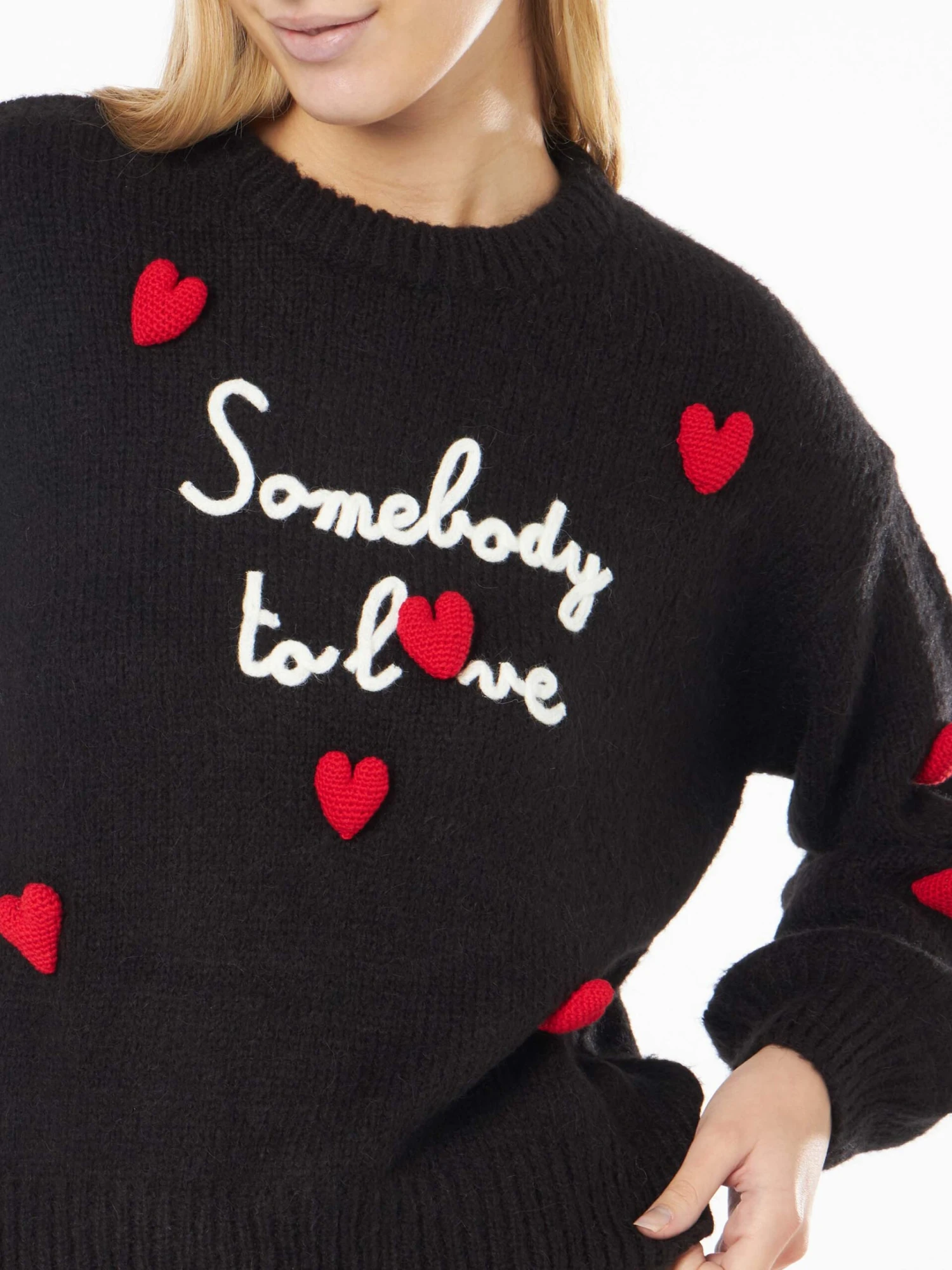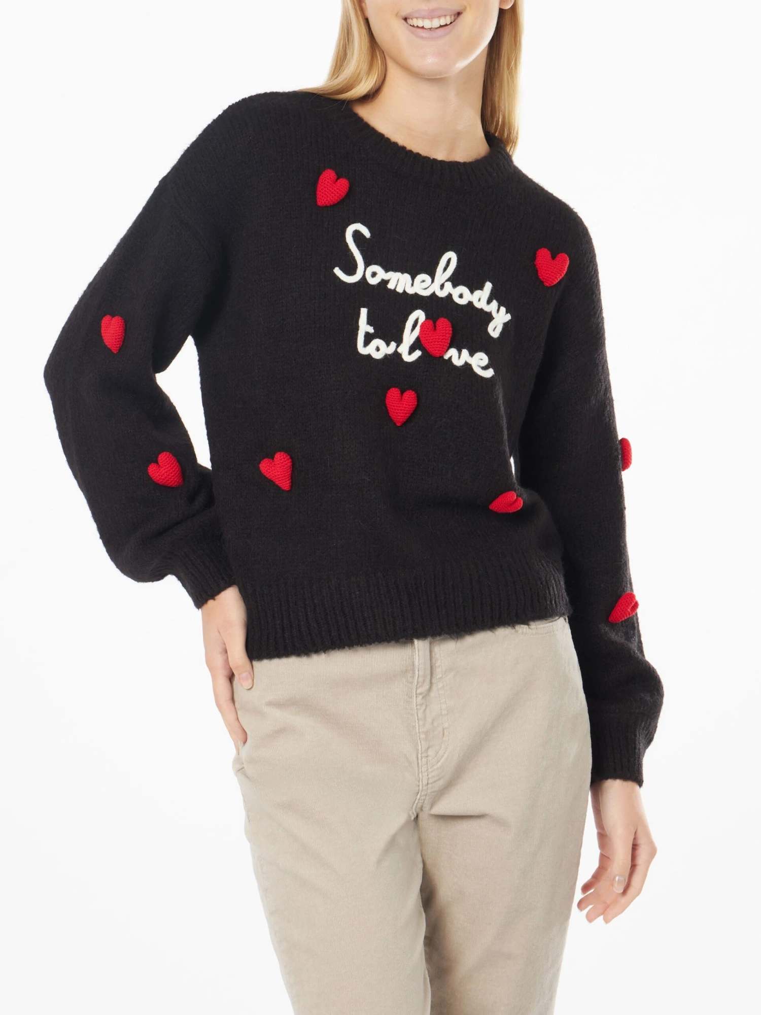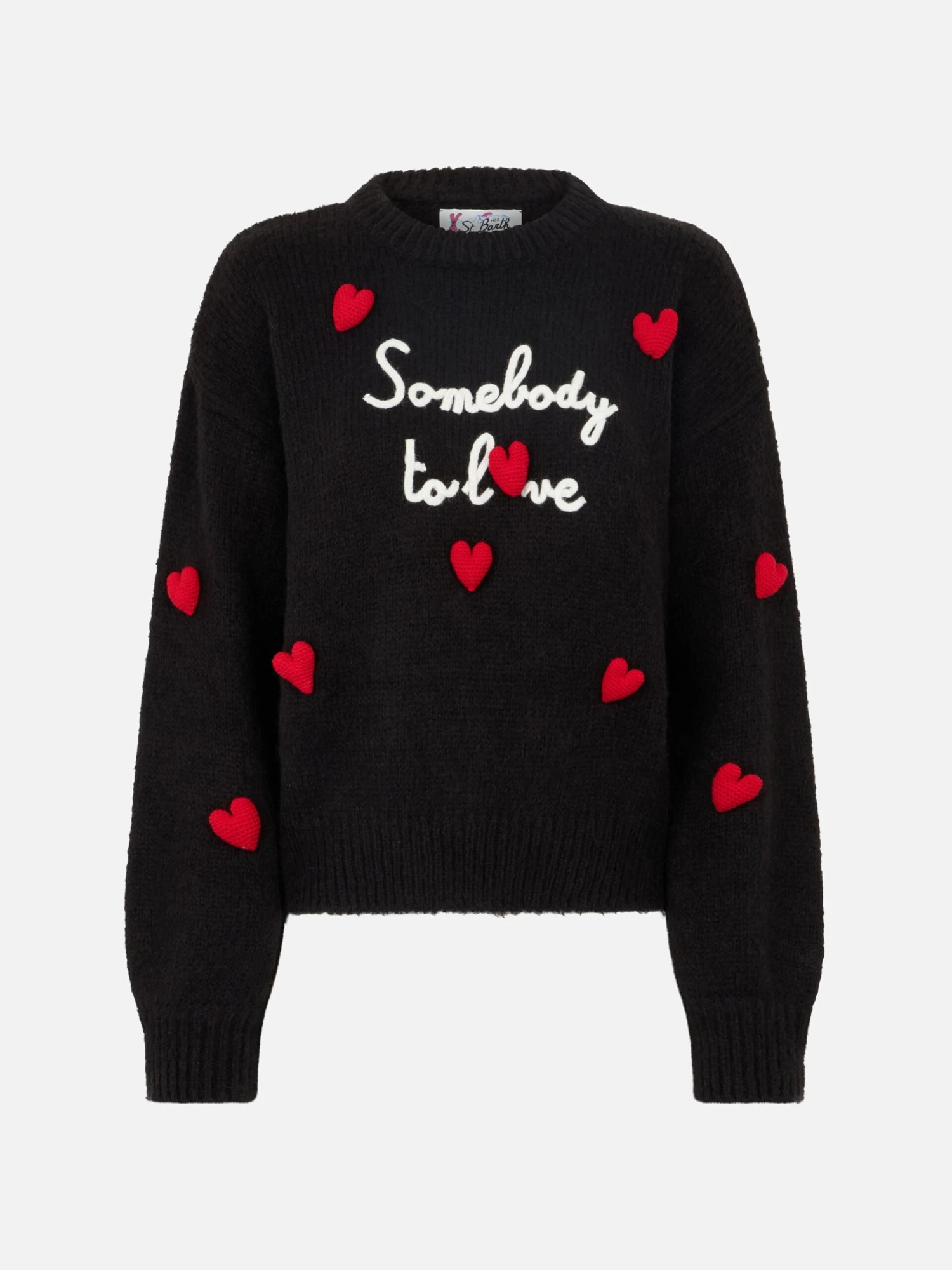 MC2 Saint Barth Woman Boxy Shape Soft Sweater With Somebody To Love Embroidery And Crochet Hearts Patch
