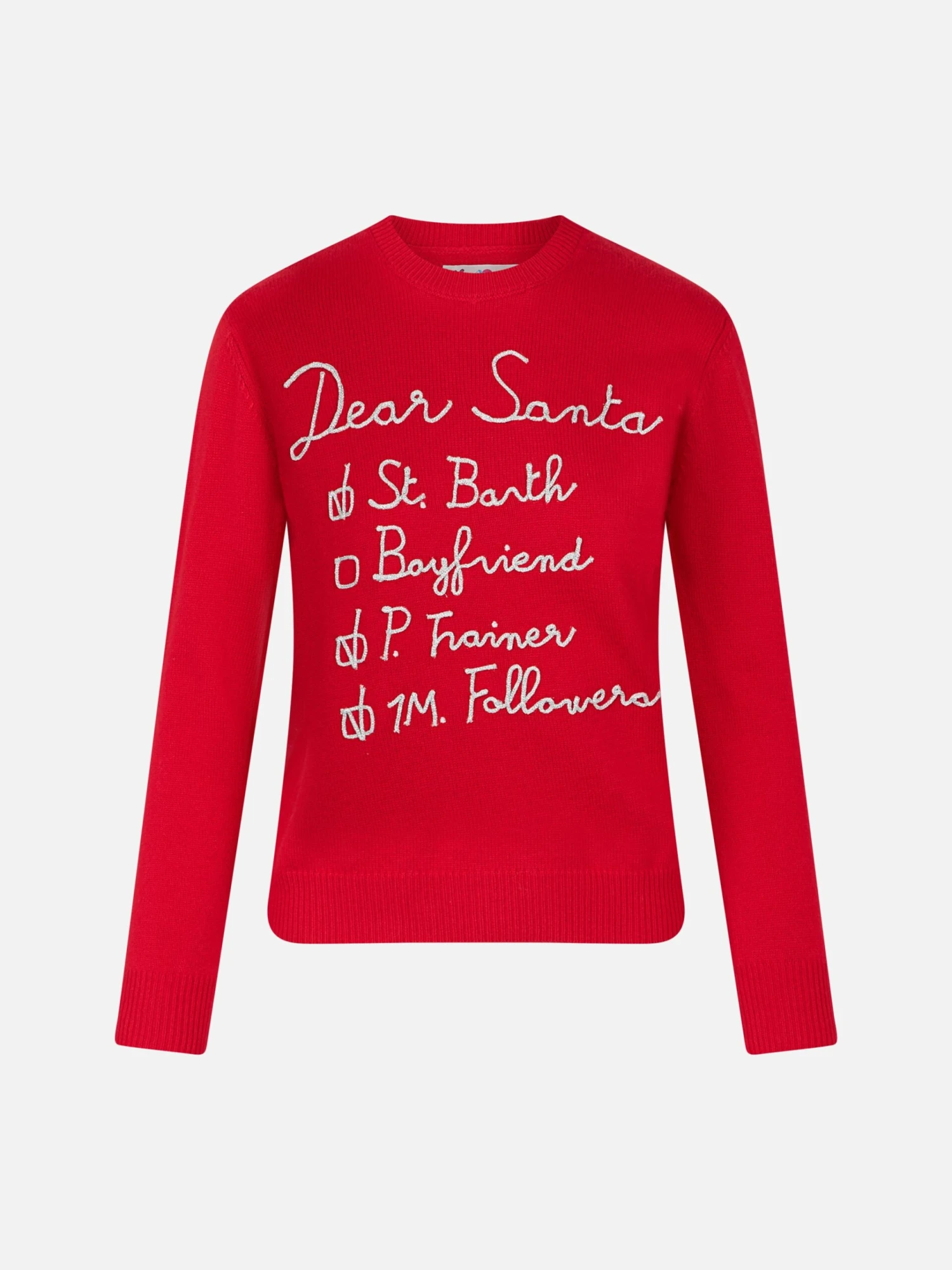 MC2 Saint Barth Woman Brushed Sweater With Dear Santa List Embroidery