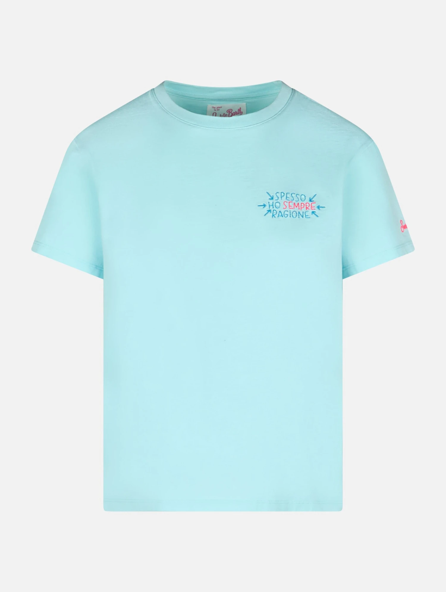 MC2 Saint Barth Woman Cotton Jersey Crewneck T-shirt Emilie With Spesso Ho Sempre Ragione Embroidery | INSULTI LUMINOSI SPECIAL EDITION