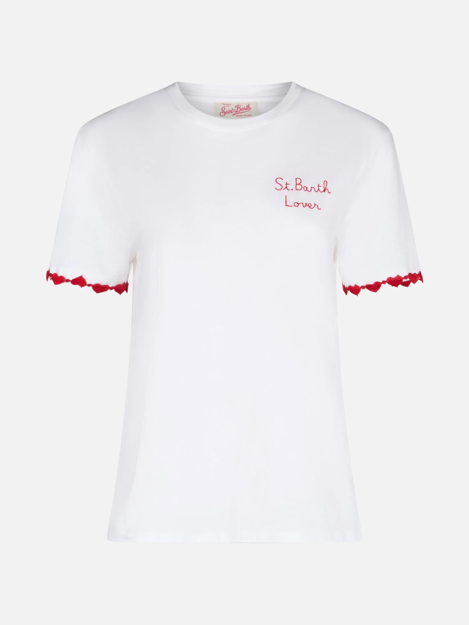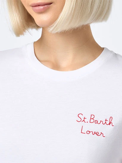 MC2 Saint Barth Woman Cotton Jersey Crewneck T-shirt Emilie With St. Barth Lover Embroidery