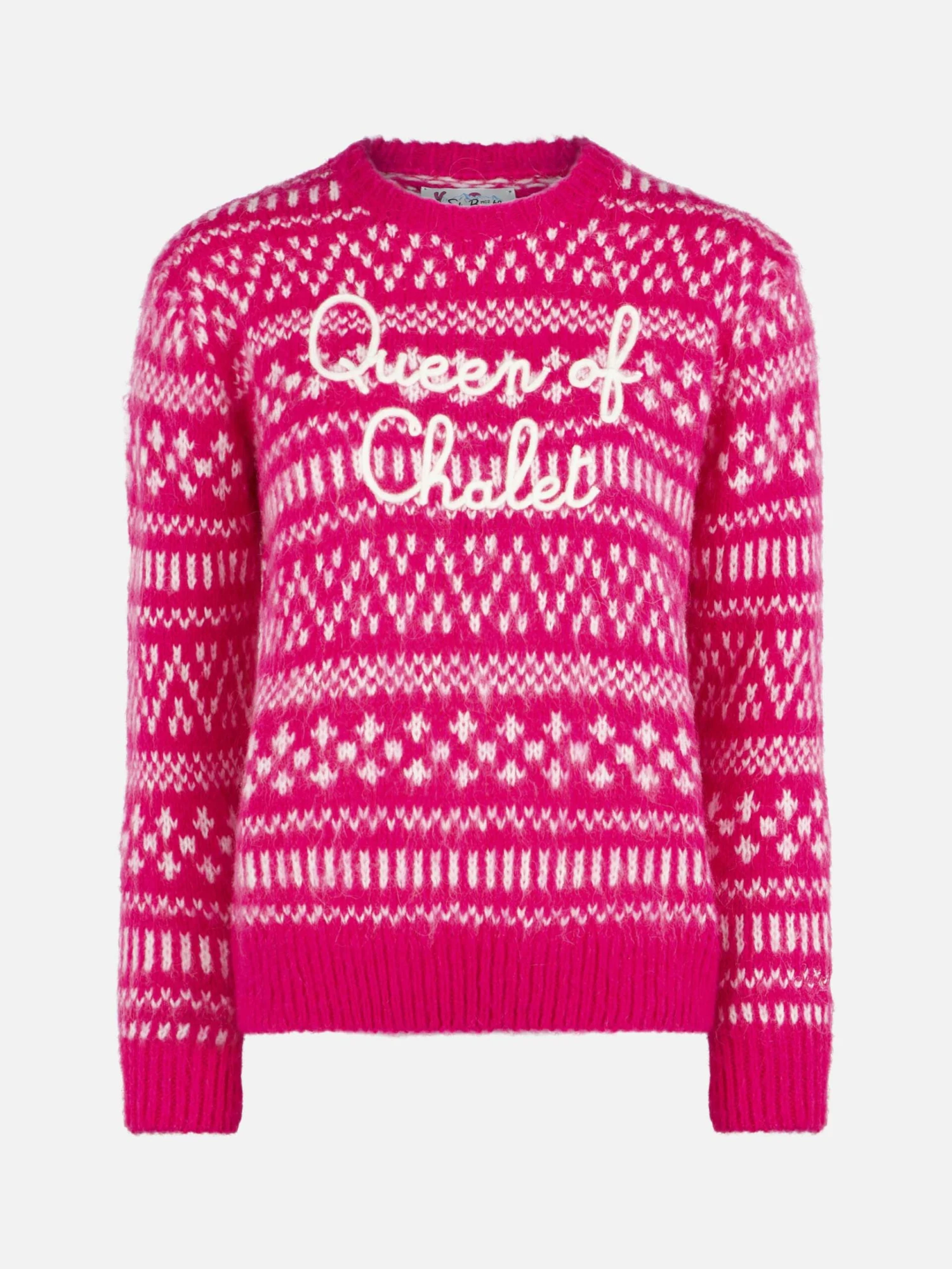 MC2 Saint Barth Woman Crewneck Soft Sweater With Fair Isle Print And Queen Of Chalet Embroidery