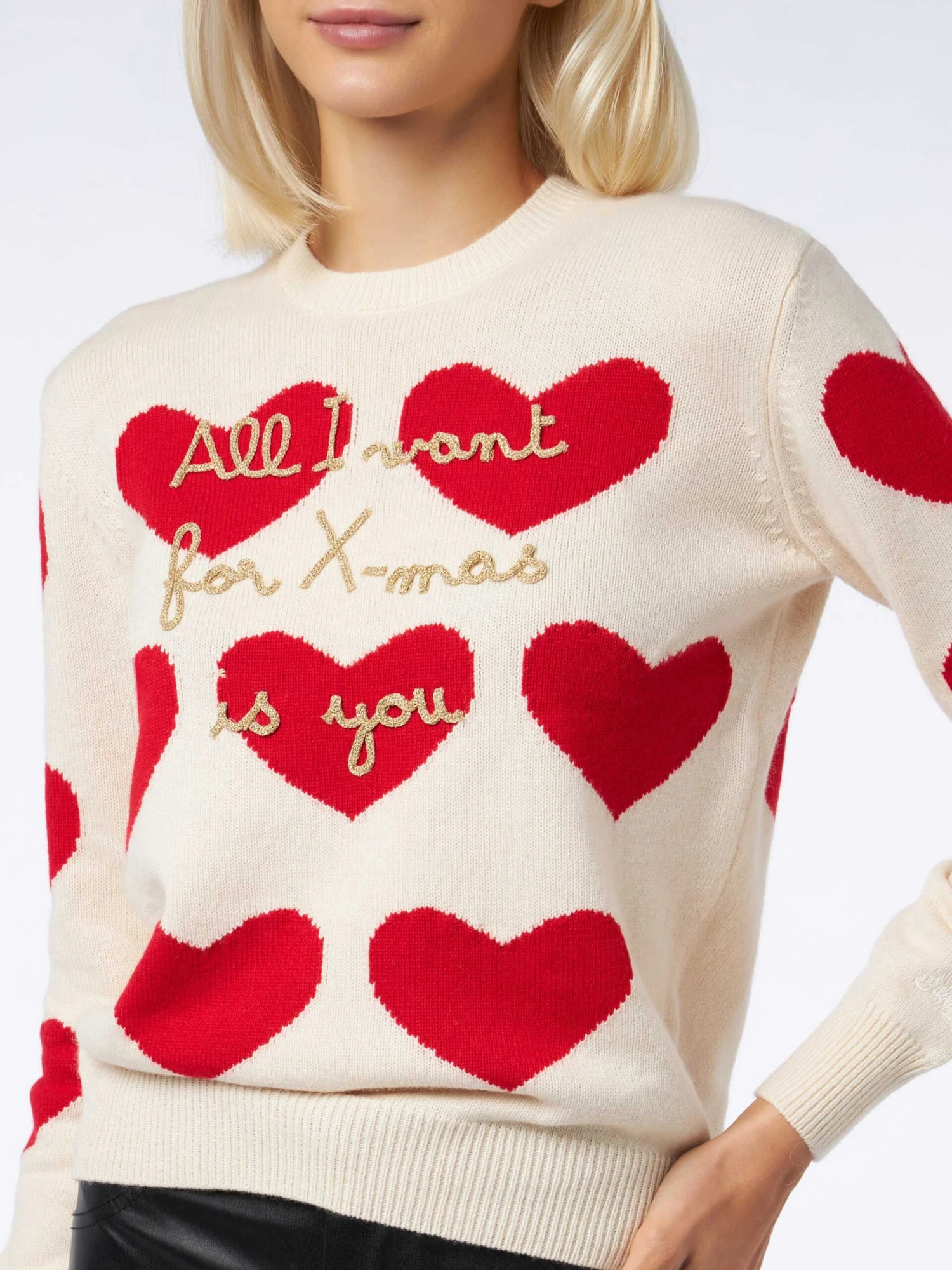 MC2 Saint Barth Woman Crewneck Sweater With All I Want For Xmas Is You Embroidery