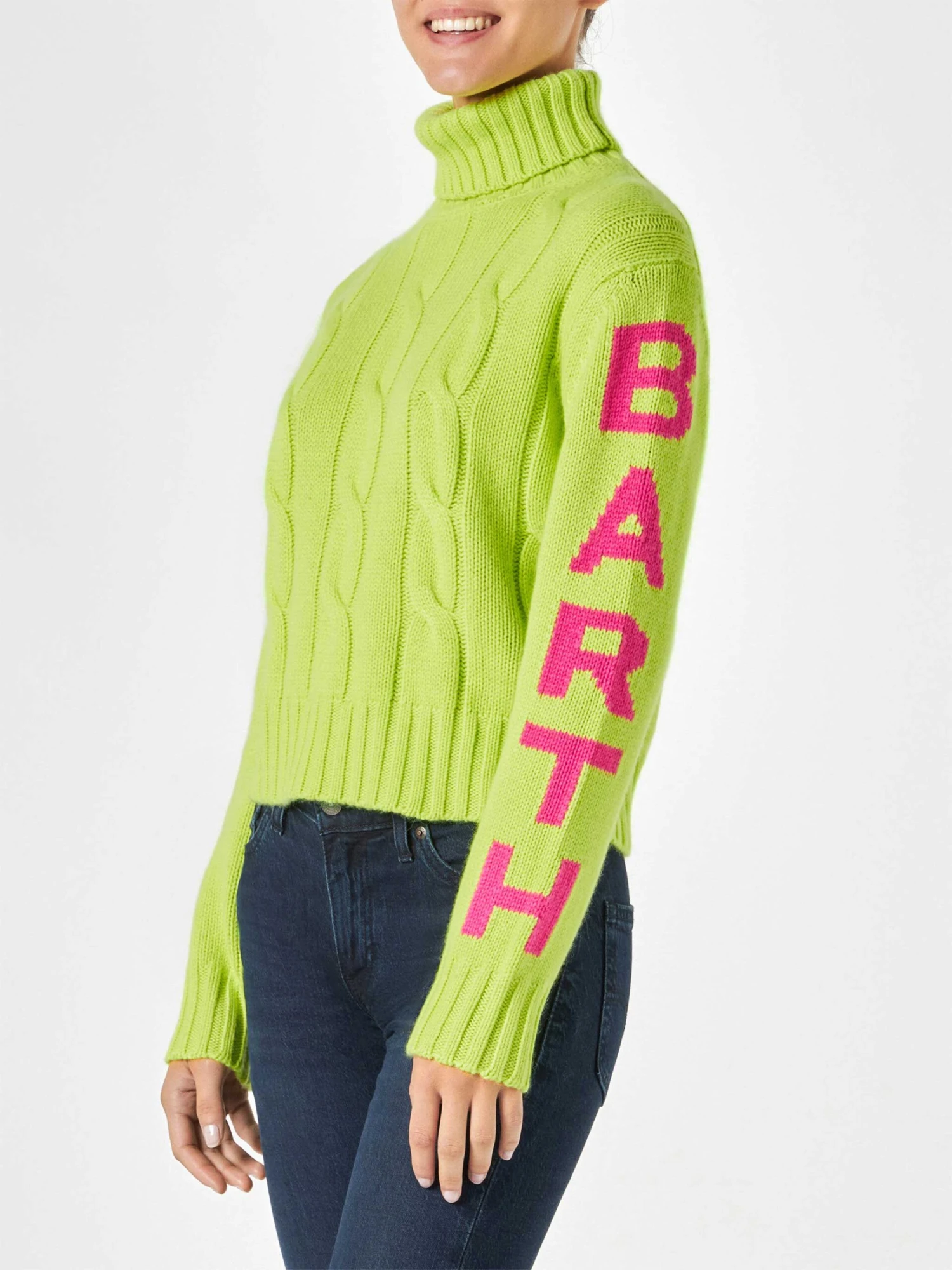 MC2 Saint Barth Woman Fluo Yellow Turtleneck Braided Sweater