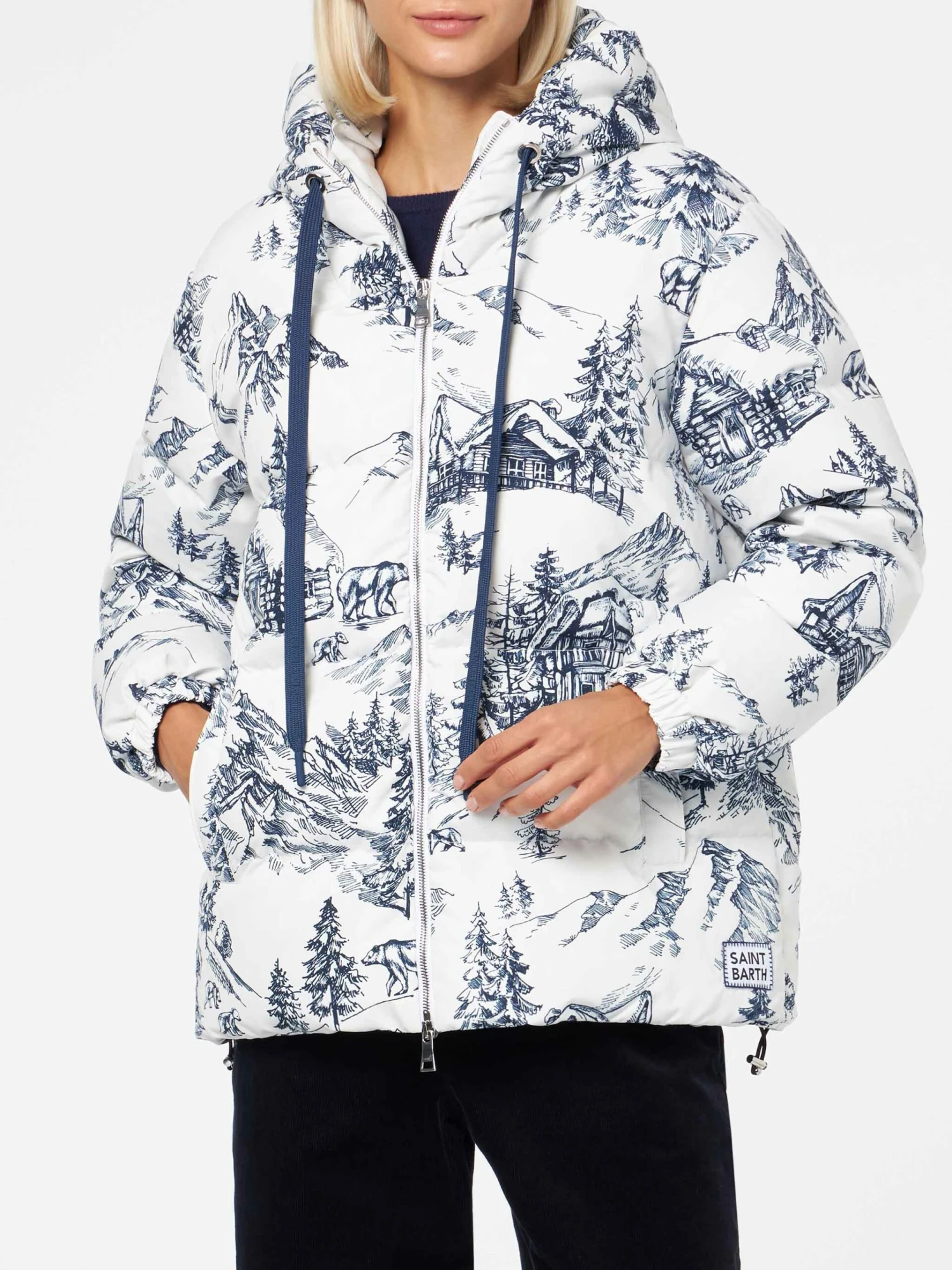 MC2 Saint Barth Woman Hooded Down Padded Jacket With Toile De Jouy Print