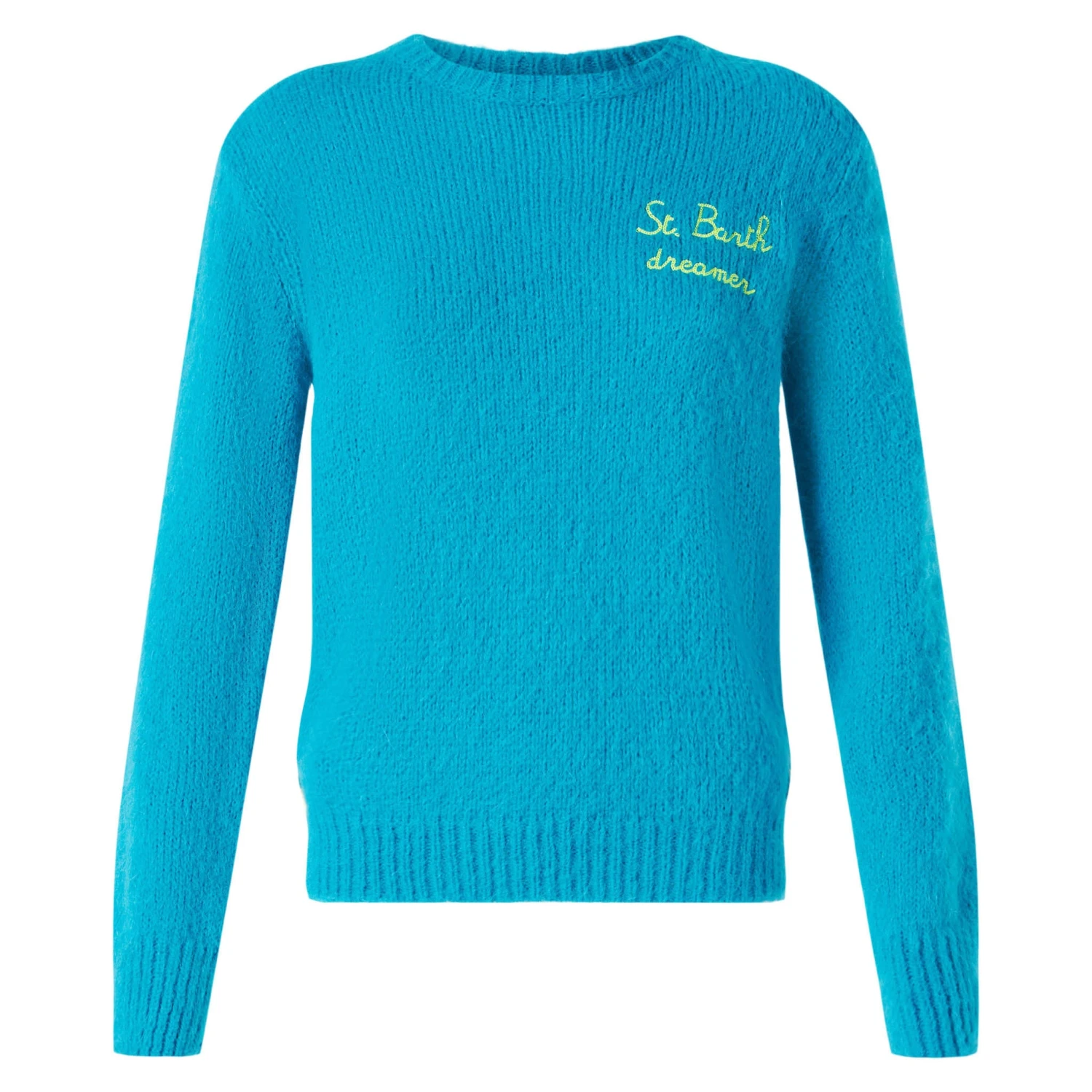 MC2 Saint Barth Woman Light Blue Brushed Sweater With Embroidery
