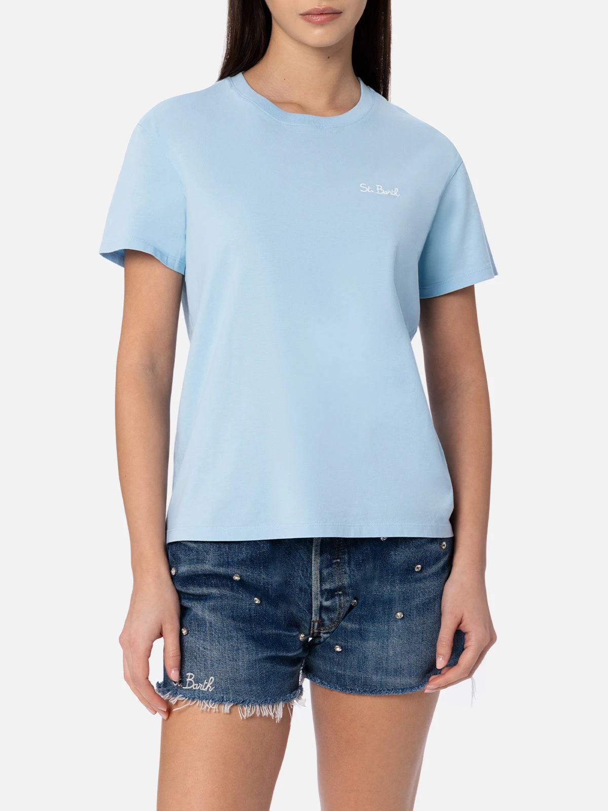 MC2 Saint Barth Woman Light Blue Cotton Jersey Crewneck T-shirt Emilie