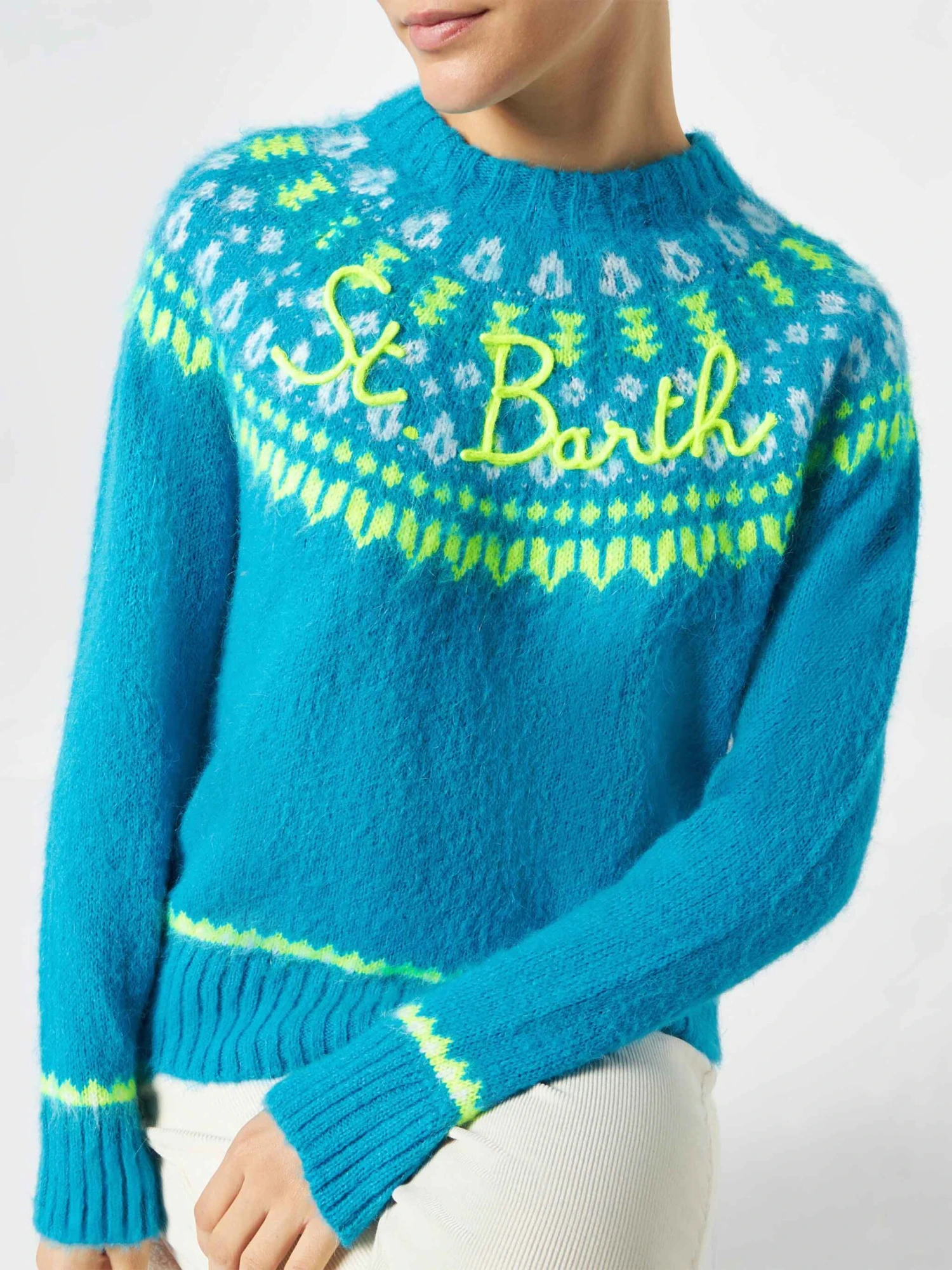 MC2 Saint Barth Woman Light Blue Crewneck Nordic Jacquard Sweater