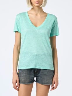 Be the first to review “MC2 Saint Barth Woman Linen Jersey Sage Green V-neck T-shirt Eloise” Cancel reply