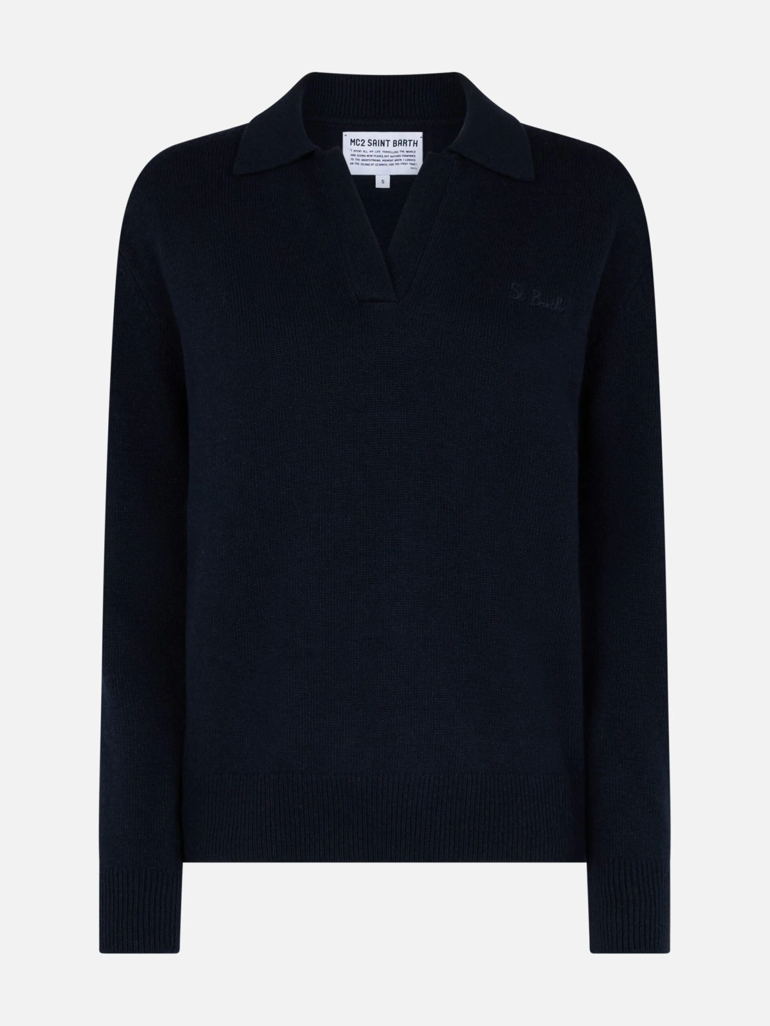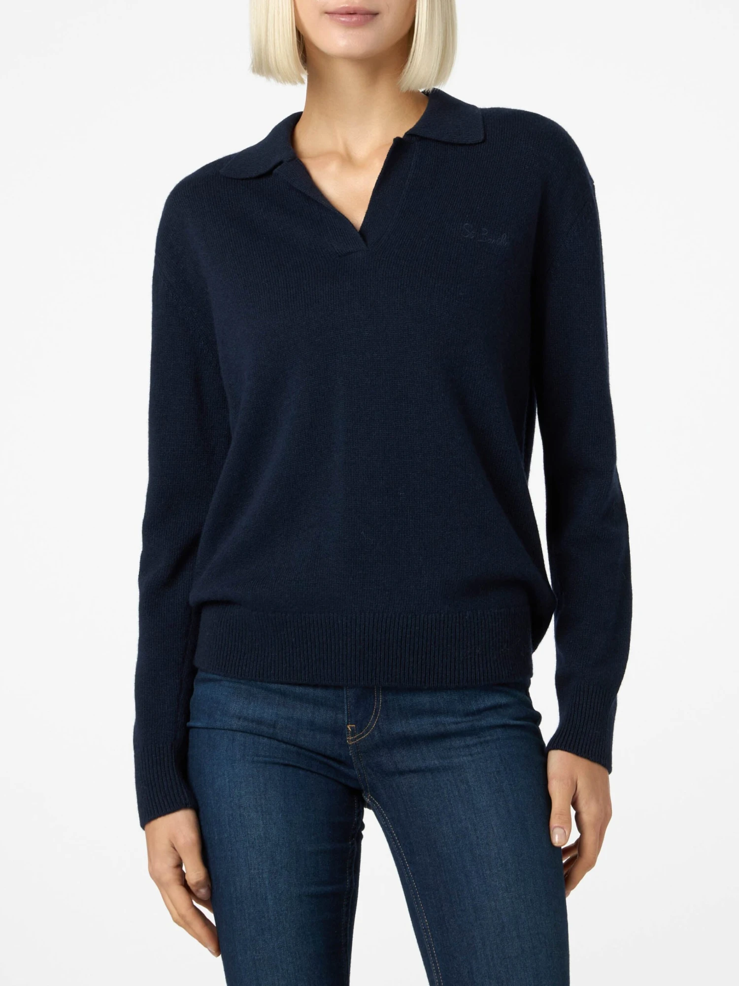 MC2 Saint Barth Woman Navy Blue Cashmere Blend Sweater Eze With Polo Collar