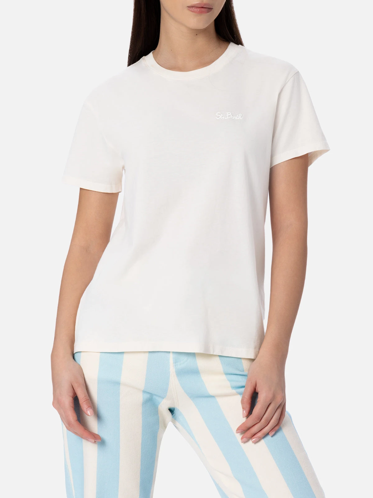 MC2 Saint Barth Woman Off-white Cotton Jersey Crewneck T-shirt Emilie