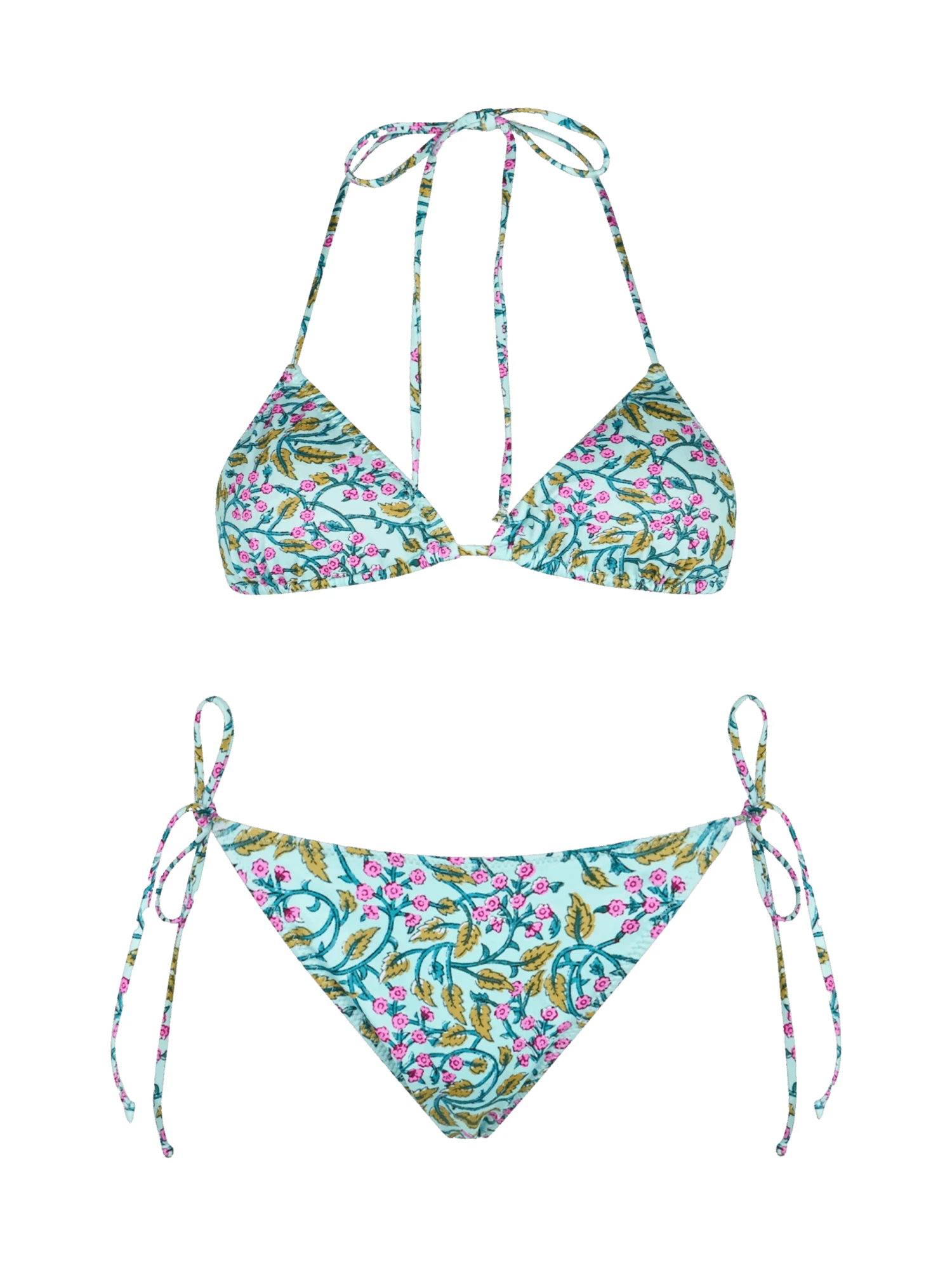 Timeless in design, the sliding triangle top swimsuit Leah on a thin strap is a summer wardrobe essential. Its slender and versatile straps can be worn straight or tied behind the neck, ensuring a customized fit for your tan. The matching classic swim briefs Marielle with medium coverage is a summer wardrobe essential. Its slender and versatile straps secure at the sides, offering adjustable fittings to suit your hip size according to your preference, ensuring a customized fit for your tan