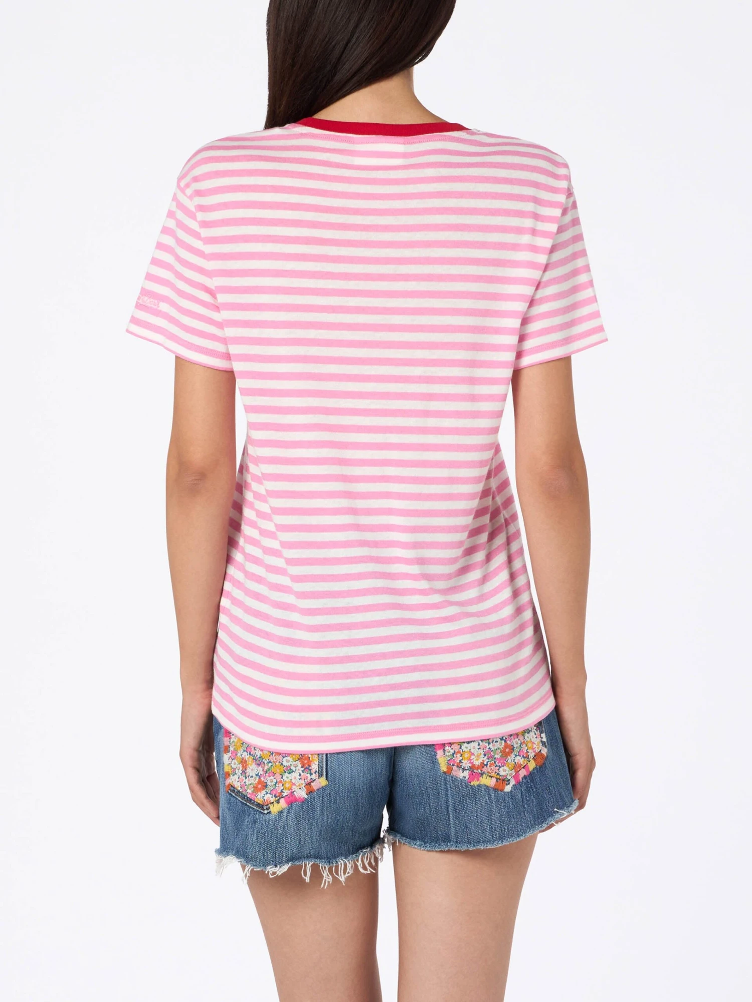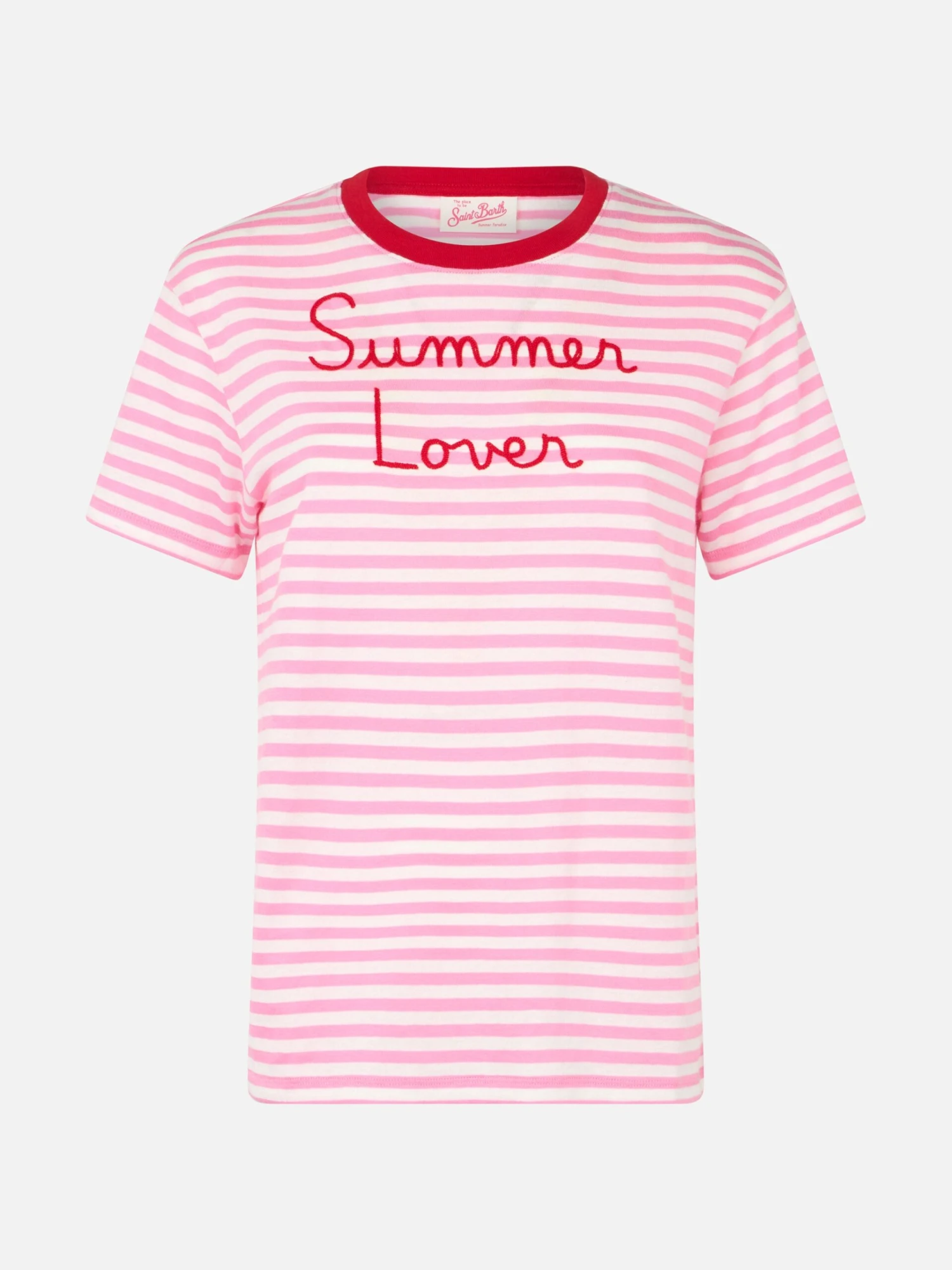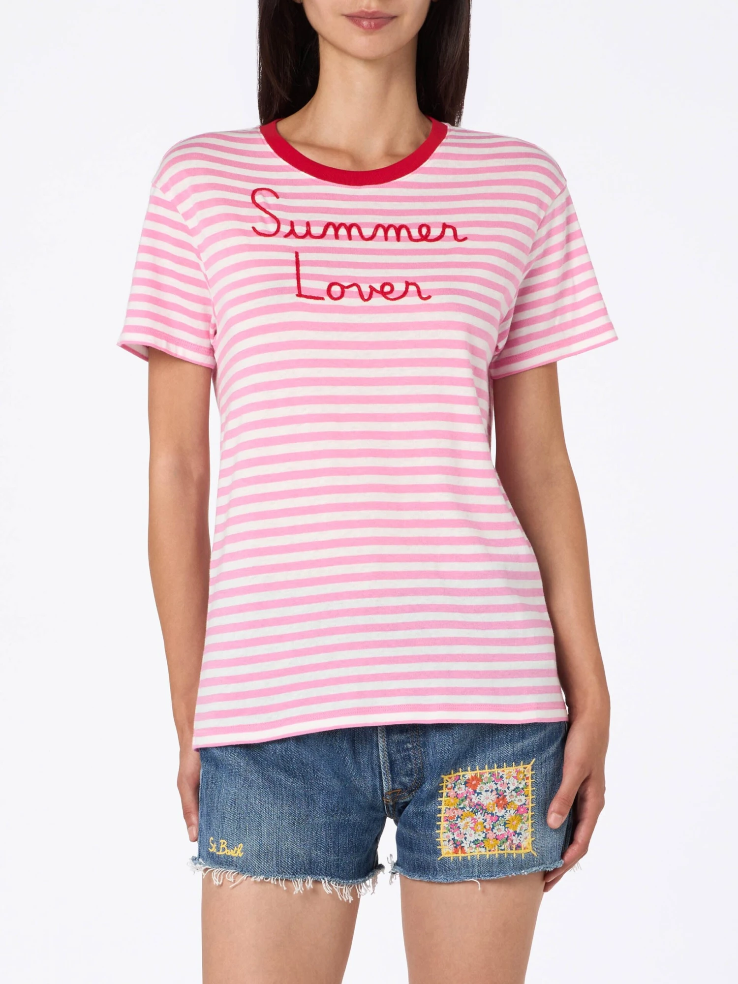 MC2 Saint Barth Woman Striped Cotton Jersey Crewneck T-shirt Emiilie With Summer Lover Embroidery