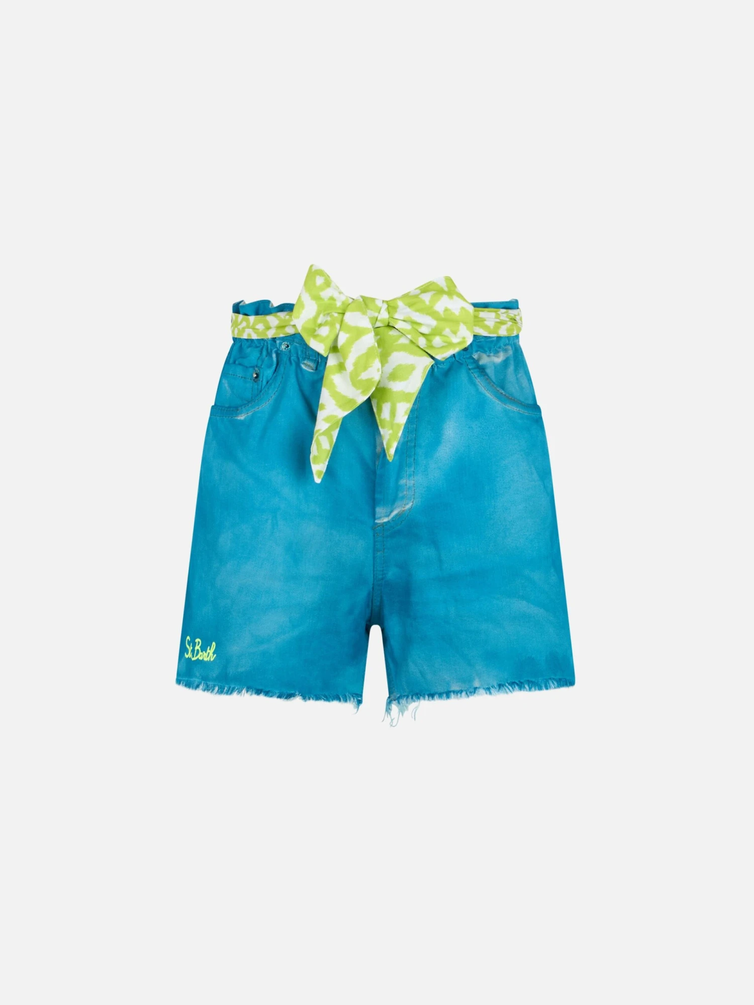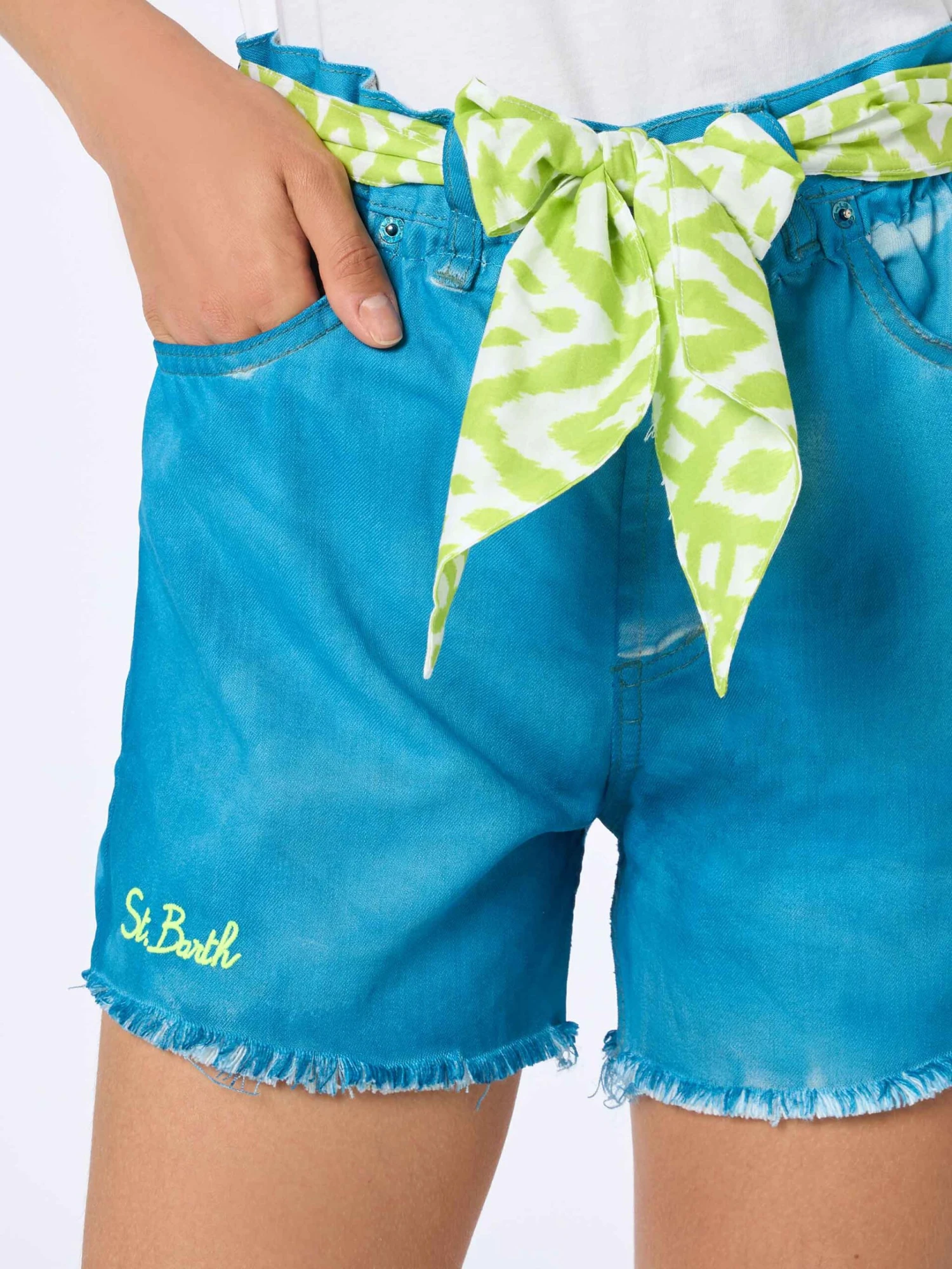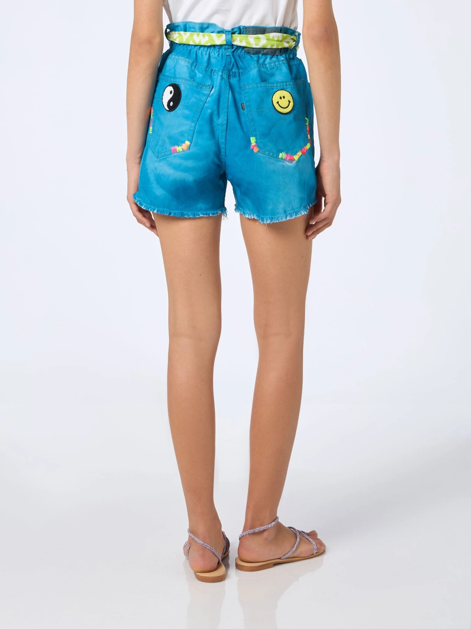 MC2 Saint Barth Woman Upcycled Turquoise Denim Shorts Arizona With Embroidery