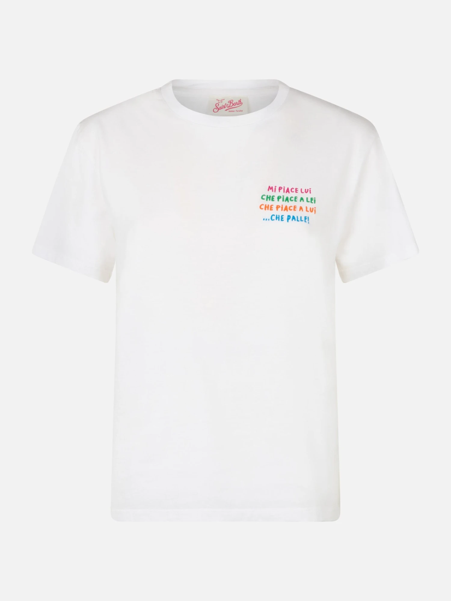 MC2 Saint Barth Woman White Cotton Jersey Crewneck T-shirt Emiilie With Mi Piace Lui… Embroidery