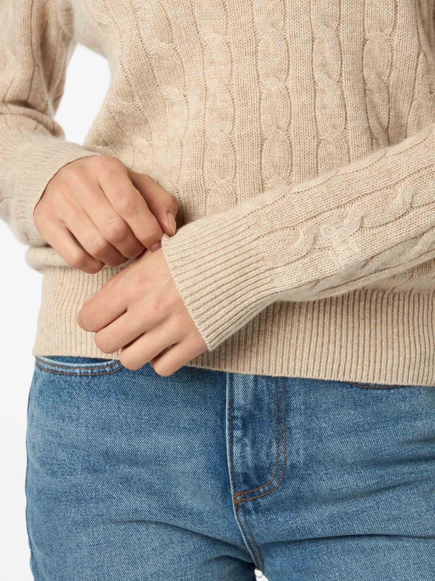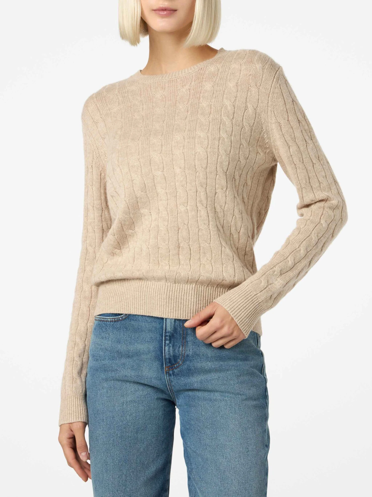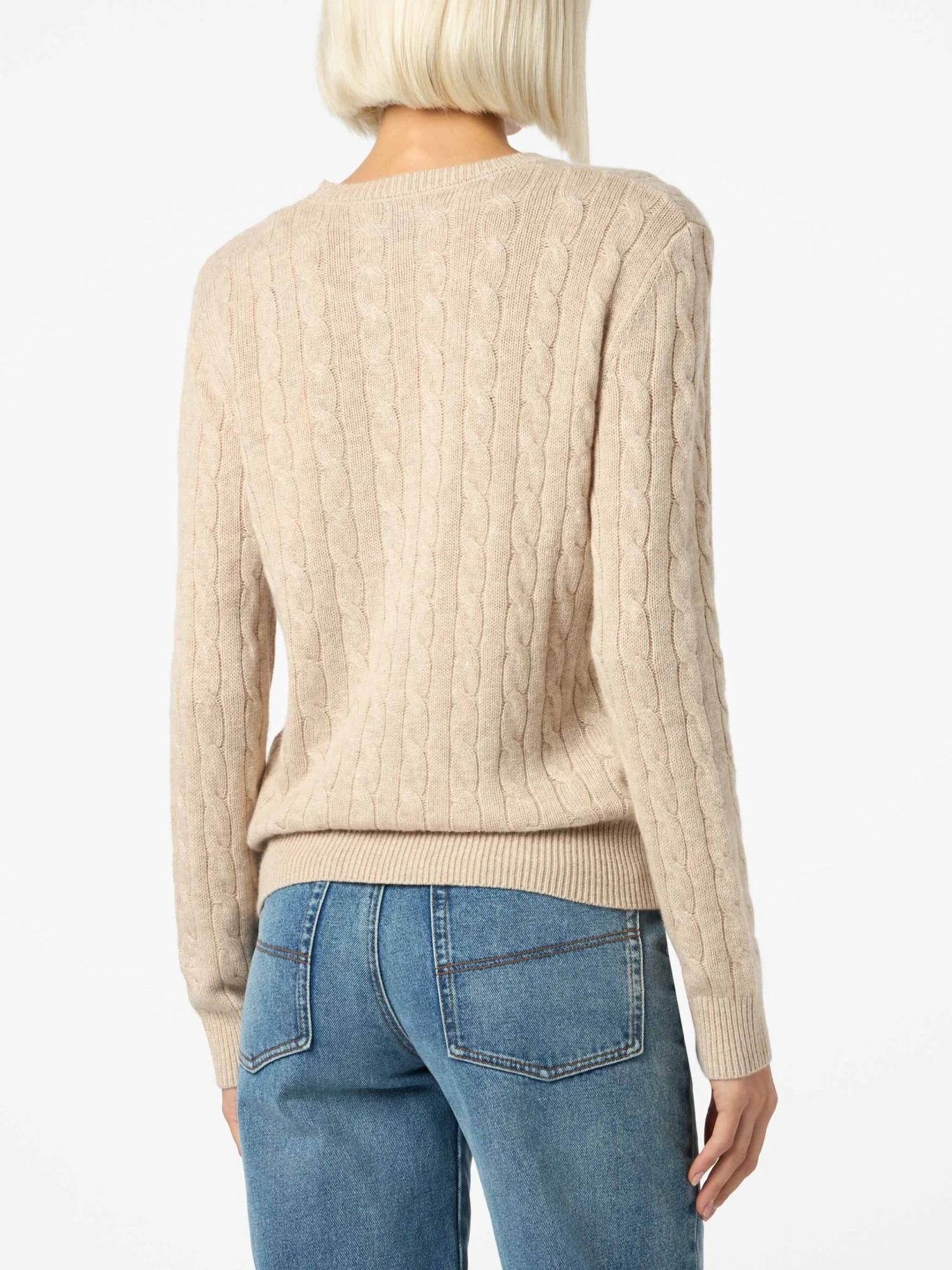 MC2 Saint Barth Women Beige Cable-knit Cashmere Blend Sweater Sorbonne