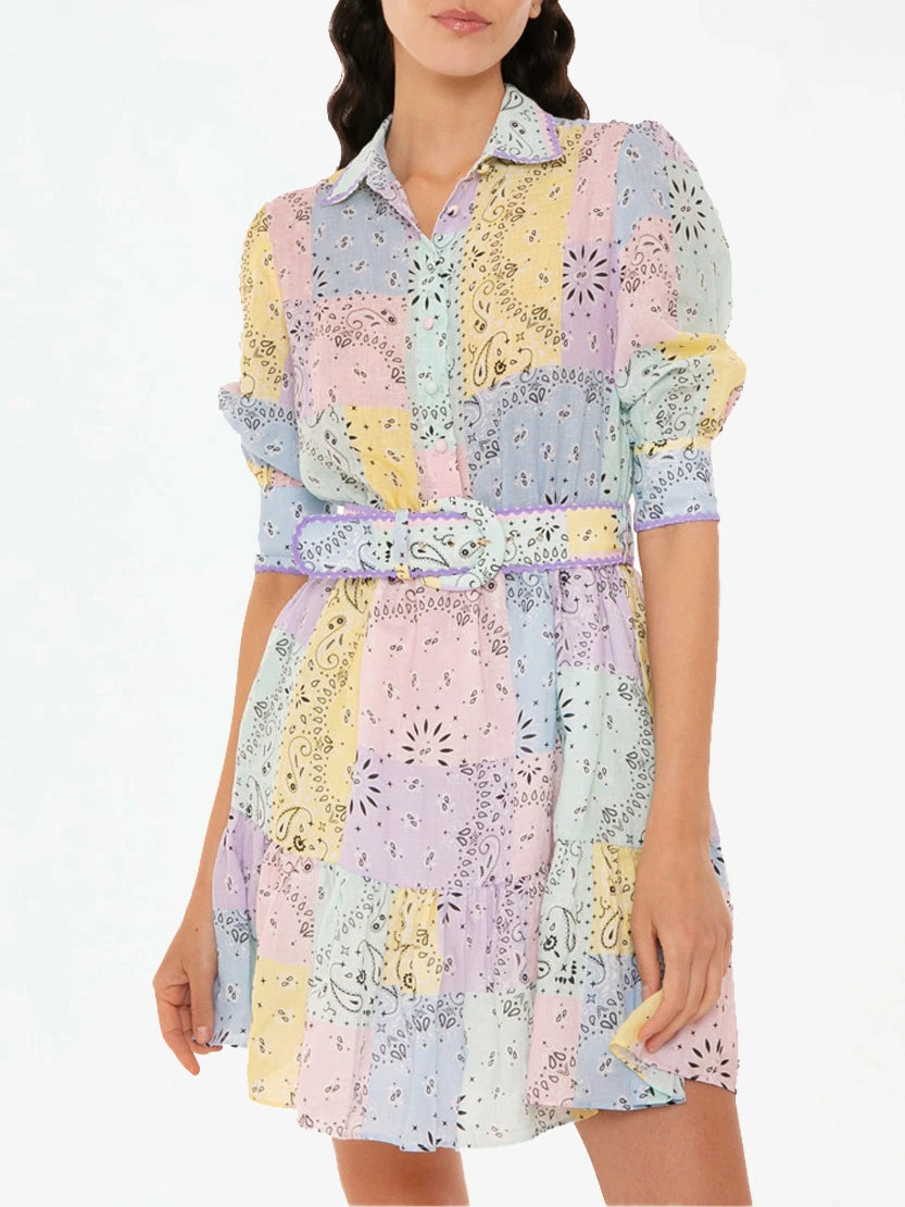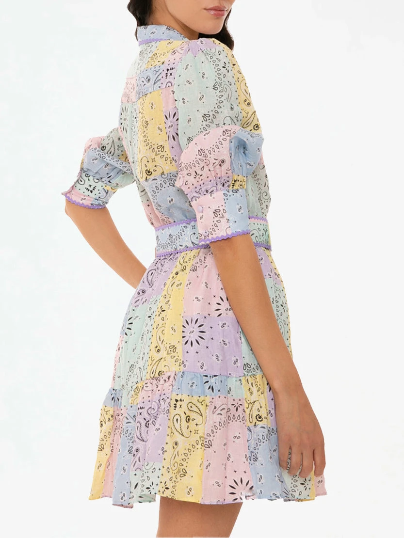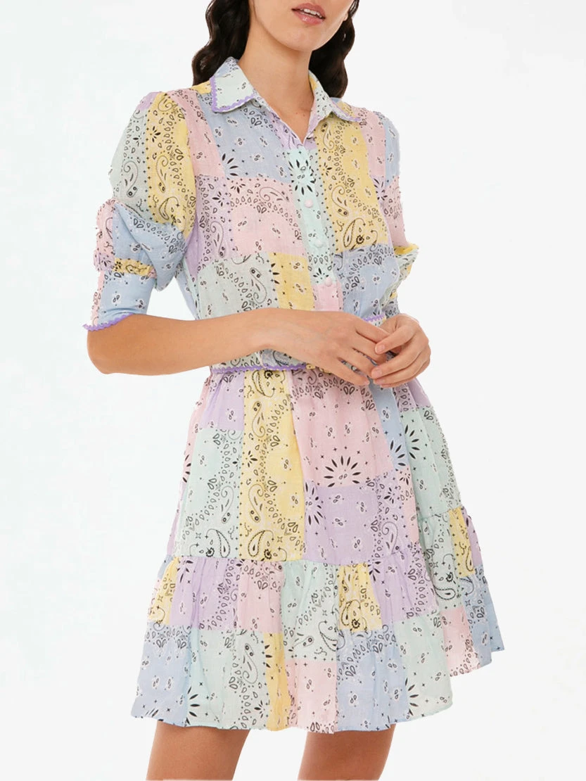 Multicolor Bandanna Linen Short Dress Daisi