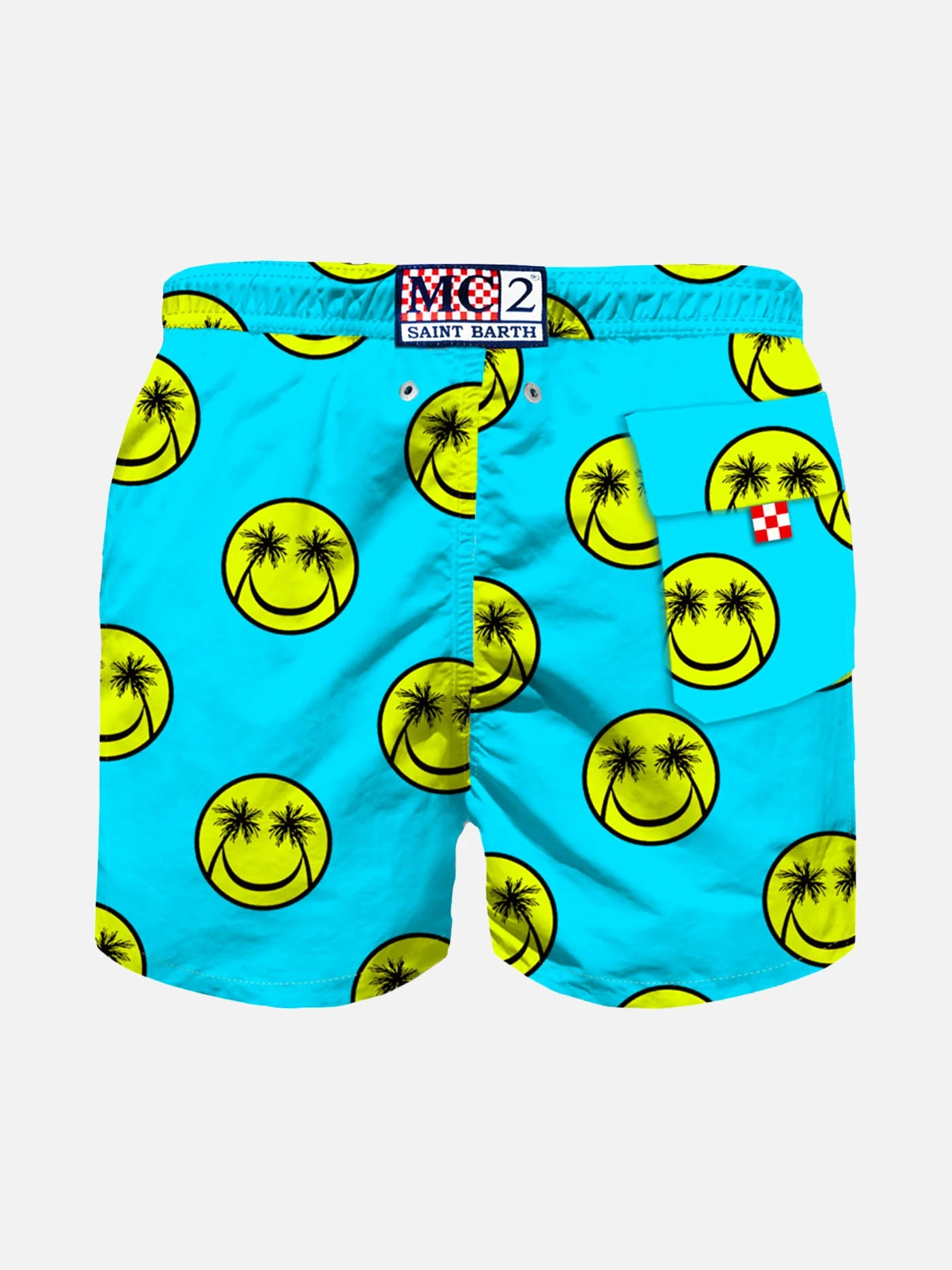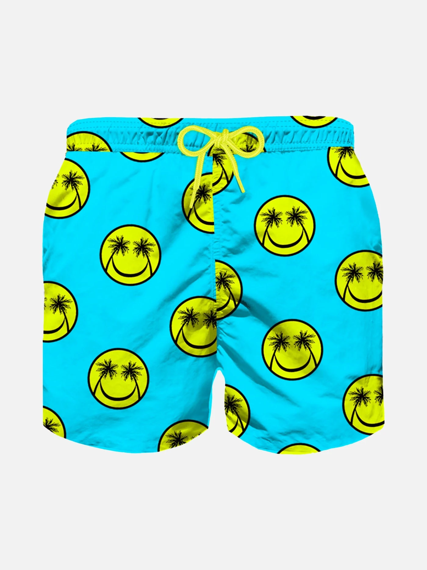 Boy’s Swimshorts, mid-length,  palms smile all over print on