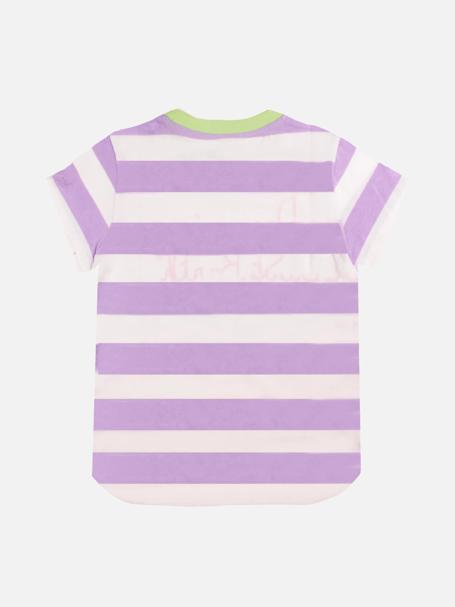 Pink And White Striped Girl’s T-shirt With Embroided Written