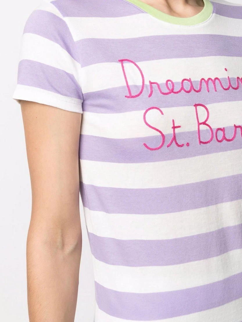 Woman Striped T-shirt With St. Barth Is My Dream Embroidery