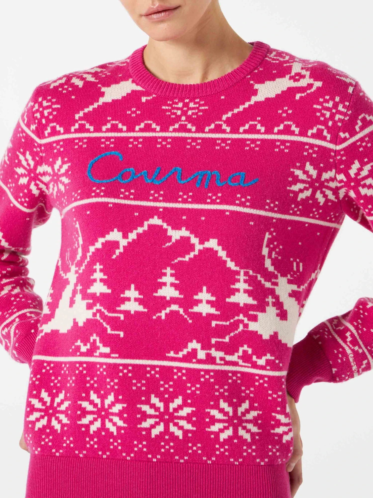 Woman Sweater With Norwegian Pattern And Courma Embroidery