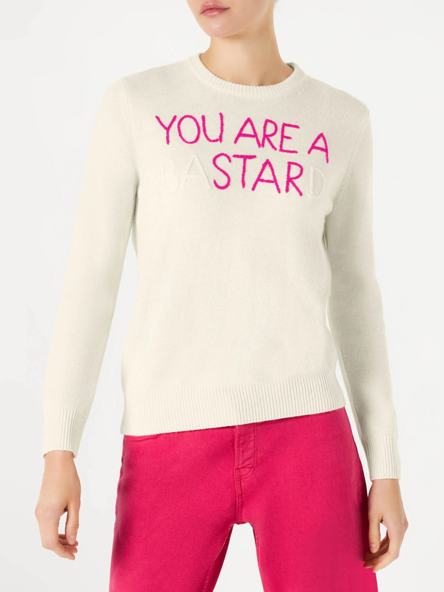 Woman White Sweater You Are A (Ba)star(d) Embroidery
